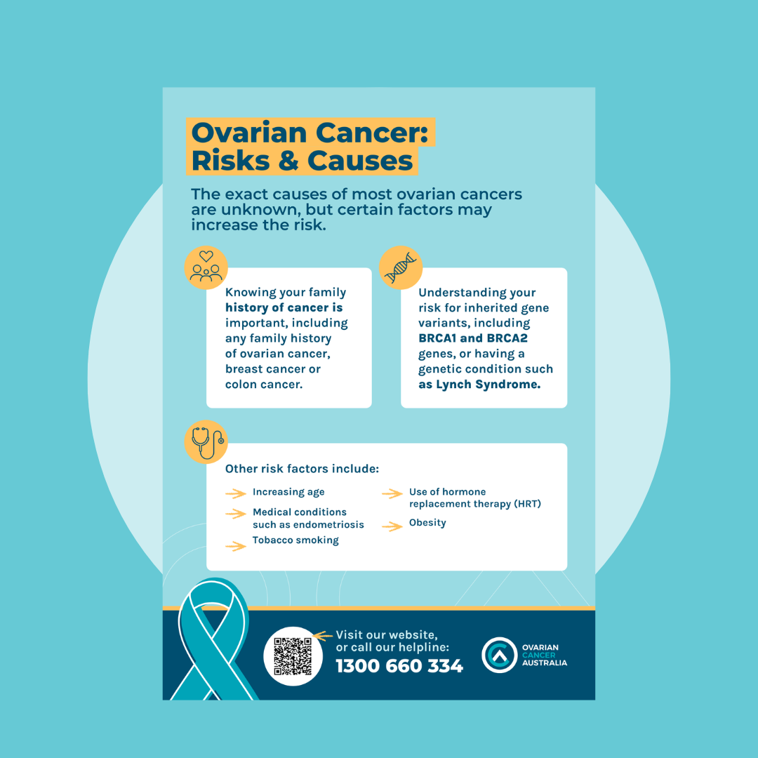 This A3 poster is a quick reference tool to educate people about the known risks and causes of ovarian cancer.